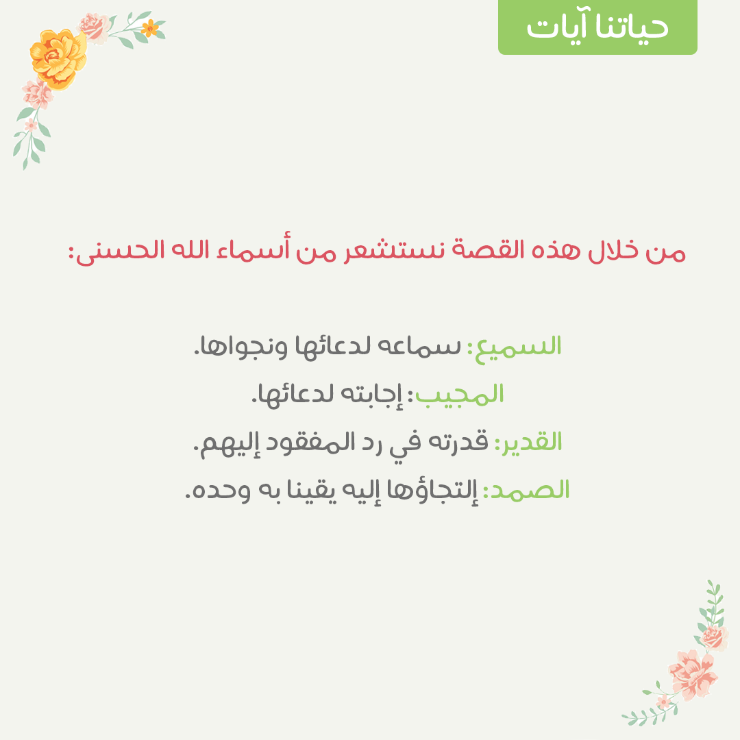 من خلال هذه القصة نستشعر من أسماء الله الحسنى: