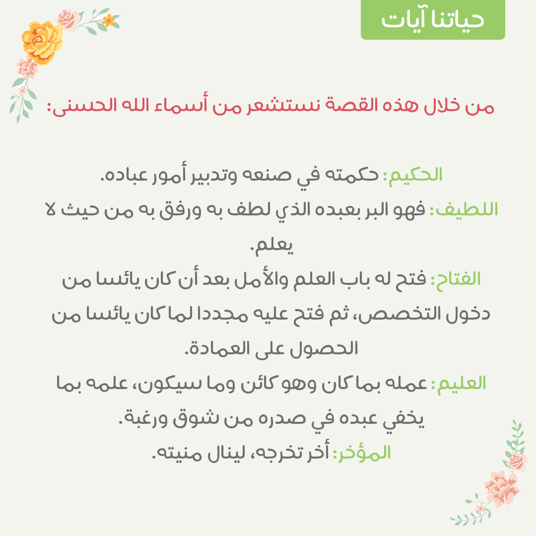 من خلال هذه القصة نستشعر من أسماء الله الحسنى: