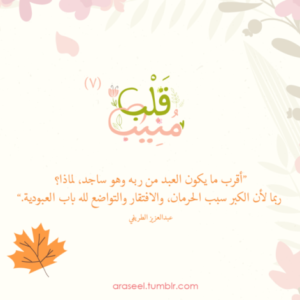 *“أقرب ما يكون العبد من ربه وهو ساجد، لماذا؟ ربما لأن الكبر سبب الحرمان، والافتقار والتواضع لله باب العبودية”*. عبدالعزيز الطريفي