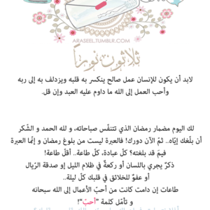 أيا من حبسك العذر عن صيام رمضان أو قيامه من أدنى الطاعات إلى أكبرها..