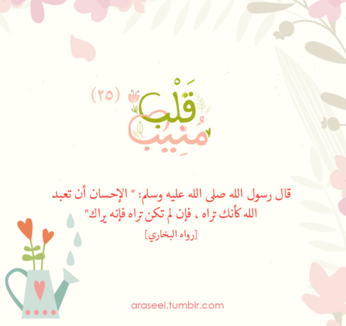 ٢٥ رمضان قال رسول الله صلى الله عليه وسلم: “ الإحسان أن تعبد الله كأنك تراه ، فإن لم تكن تراه فإنه يراك” [رواه البخاري] ✨ *منزلة الإحسان* عندما نشد الرحال إلى الله فإننا نبلغ بقلوبنا مالا يسعه المقام إيماناً وإجلالاً، فكيف بنا إن كنا نستحضر عظمته ومراقبته في كل دقيقة وثانية، وفي كل لحظة …