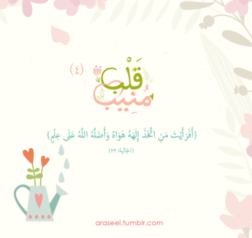 ? | #قلب_منيب ٤ رمضان *{أَفَرَأَيْتَ مَنِ اتَّخَذَ إِلَهَهُ هَوَاهُ وَأَضَلَّهُ اللَّهُ عَلَى عِلْمٍ}* (الجاثية: 23) ✨ *تغلب على الهوى* وُجدنا يا صاحبي على طريق الحياة لكي نعبد الذي أغدق علينا بالنعم، وجادَ علينا بتبيان طريق الهدى لئلا يكون للناس حجة! لئلا يُجاريون الدنيا في كلِّ ملذاتها ويعلقون على شمّاعتها أعذرًا وأسبابًا واهية.. ? فالعدو اللدود هو …